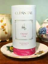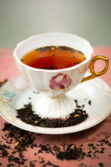 Comfort from the cold, the spices added to this black tea will invigorate and stimulate. May be served black or with milk/cream/sugar if desired.